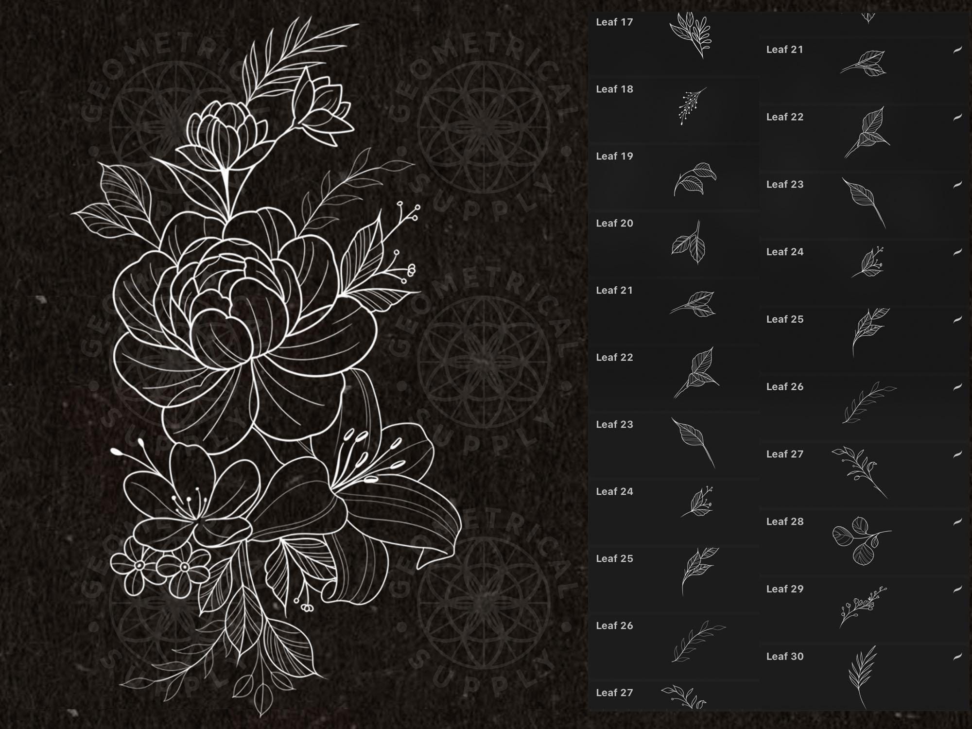 Elevate your tattoo portfolio with our professional-grade flower toolkit. This versatile set includes elements of flowers and leaves.